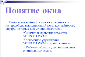 Задайте следующие анимационные эффекты для слайда Понятие окна: