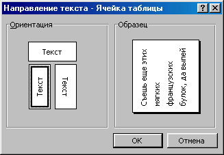 Выделите всю таблицу и установите формат вывода вертикального текста. Для этого выполните команду ФорматНаправление текста…, и в появившемся окне Направление текста выберите требуемое расположение текста.