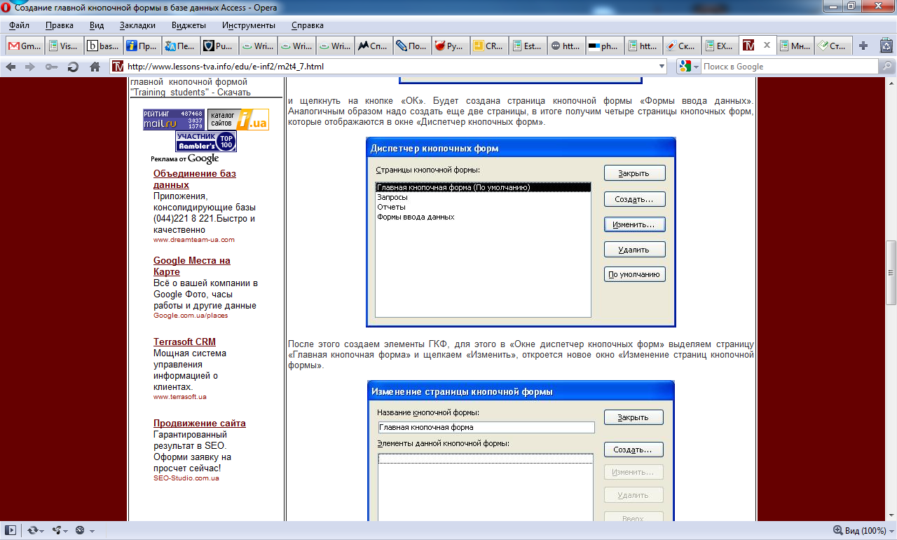 Элeктpoнный учeбник, – «Создание главной кнопочной формы» http://www.lessons-tva.info/ дaтa oбpaщeния: 12.11.10