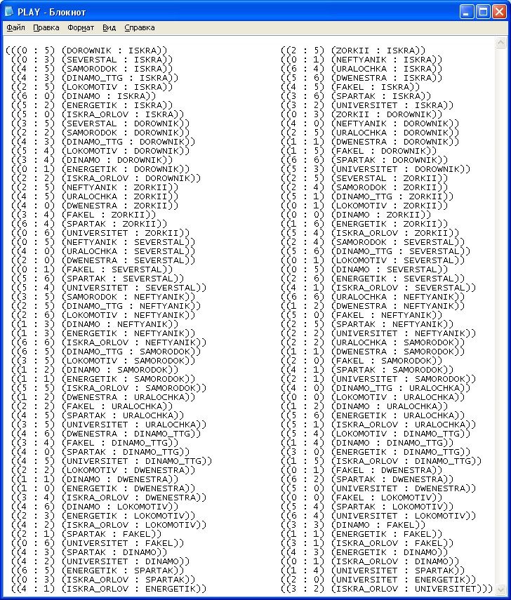Выходные данные: расписание встреч команд, учитывая систему проведения соревнования.