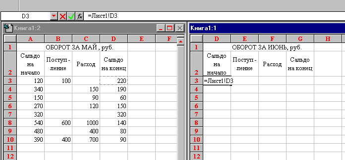 На лист 2 столбец «Сальдо на начало месяца» перенести значение столбца