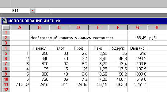 В формулах можно использовать имена ячеек или диапазонов ячеек. Расчеты в экономических и бухгалтерских документах наполнены определенным содержанием. Например,
