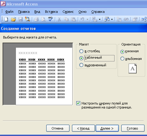 После этого, мы будем работать, уже в зависимости от того нужно ли нам представить нашу «Базу данных», как презентацию, или же в последующем будем добавлять в неё данные. В нашем случае, мы сделаем её презентацией. Для этого придётся конвертировать созданные нами таблицы в отчёты с помощью консоли «Создание отчёта с помощью мастера», которая находится в подменю «Отчёты».