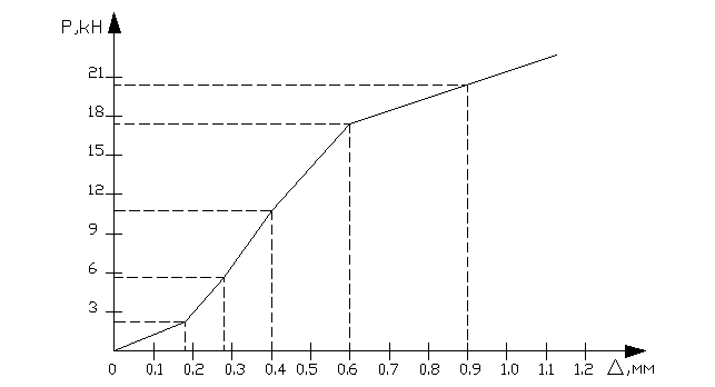 После окончания испытания по данным табл.1 строят зависимости перемещений нагельного соединения от нагрузки.