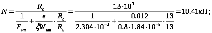 где: Q = P / 2=13.27/2=6.64, Н (кгс);