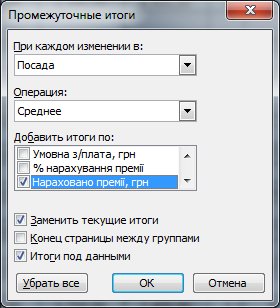 На аркуші “Пр_Прізвище” підвести проміжні підсумки: за посадою знайти середню Умовну зарплату.