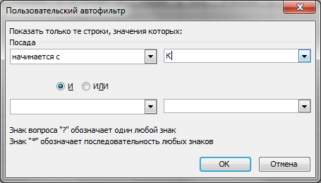 В діапазоні умов заголовок стовпця (11), за яким проводиться відбір, не повинен збігатися із заголовком початкового списку.