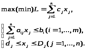 заданные величины сj, аij,,bi, dj, Dj. Часто на практике величины cj, aij bj, могут быть случайными. Так, если bi — ресурс, то он зависит от ряда факторов. Аналогично, сj — цены — будут зависеть от спроса и предложения, aij — расходные коэффициенты — от уровня техники и технологии. Задачи, в которых сj, аij,,bi — случайные величины, относят к задачам стохастического программирования. Переход от чистых стратегий к смешанным расширяет область определения задачи. Достижимый максимум целевой функции может при этом только увеличиться, а достижимый минимум — только уменьшиться. Вычисление оптимальной смешанной стратегии иногда называют определением решающего распределения стохастической задачи.