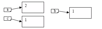 Якщо ж замість a^:=b^ записати a:=b, то напрям вказівника a змінюється. Змінна-вказівник a буде вказувати на ту ж змінну, що і вказівник b.(мал 3). Тепер значення динамічної змінної, що знаходиться за адресою 2 можна змінити двома способами: використовуючи вказівник a та вказівник b.