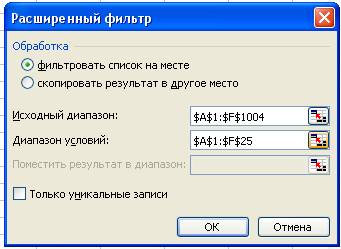 Для отбора строк списка по сложным критериям, например таким, которые содержат вычисляемые выражения, а также для размещения результатов фильтрации в произвольном месте рабочего листа служит команда меню Данные►Расширенный фильтр.
