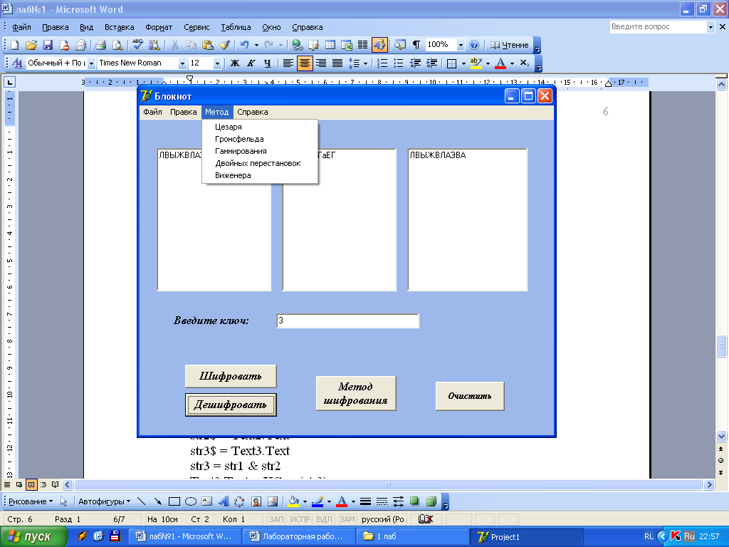 Текстовый редактор "Блокнот" с функцией шифрования - дешифрования классическими криптографическими методами