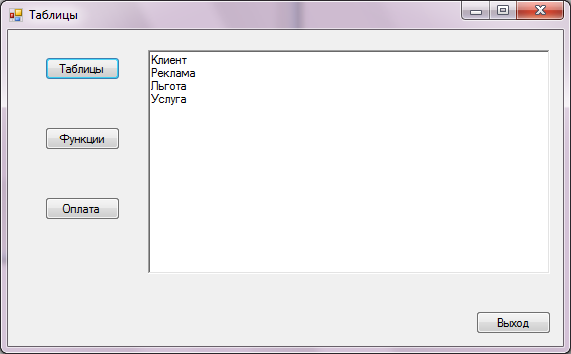 Задание: предметная область "Реклама в коммерческом издании". Возможные виды деятельности: учет клиентов с возможными льготами; учет совершенных ими заказов по различным направлениям; расчет стоимости заказа с учетом типа, даты продолжительности; оплата клиентами услуг.