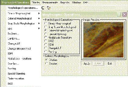 Для подсчета элементов используется Меню подсчет и классификация (Count). Эта опция Count and Classification используется для автоматического распознавания объектов на изображении, их подсчета и получения характеристик по каждому объекту. Объекты разделяются на основе яркости оттенков серого, которые можно определить вручную либо автоматически программой. Желательно чтобы объекты имели яркость отличную от фона и как можно сильнее отличались от других частей изображения. Подсчитанные объекты могут быть также классифицированы на основе результатов их измерений.