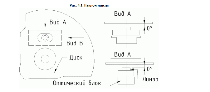 Наклон линзы - это отклонение от параллельности плоскости линзы относительно плоскости диска. Эта величина должна быть минимальной (рис. 4.1).