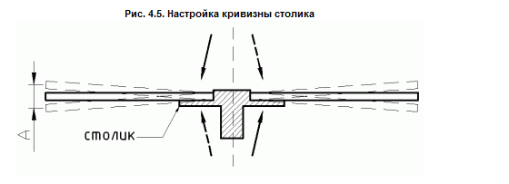 надавливая на столик (направления надавливания указаны стрелками на рис. 4.5), пытаются его выровнять.