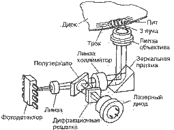 Луч лазера, отражается от призмы проходит сквозь фокусирующую линзу и падает на диск. Отразившись от диска, луч возвращается, проходит сквозь призму и падает на считывающий фотодетектор. Как видите, загрязнение линзы или призмы вдвойне ухудшают прохождение луча, так как два раза оказываются на его пути. Попадание грязи на оптику лазера является наиболее распространенной причиной прекращения нормальной работы привода: аппарат "заикается", не "распознает" или не раскручивает диски.