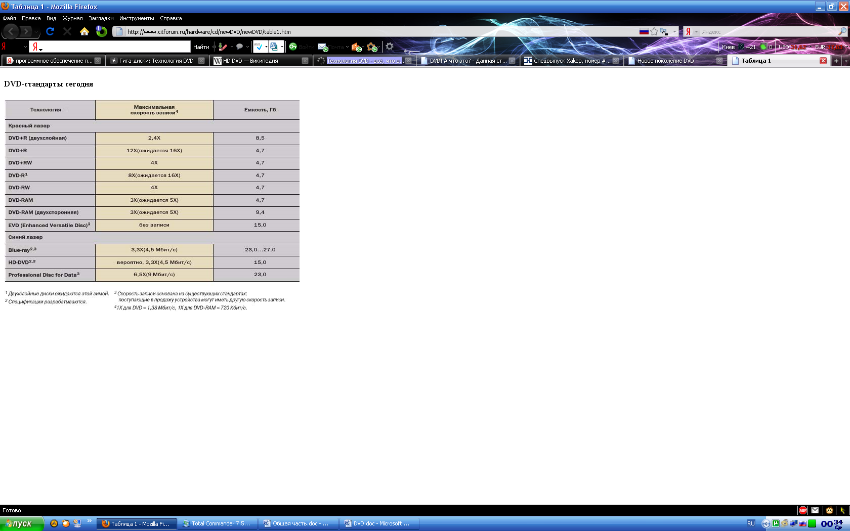 На сегодняшний день DVD является стремительно развивающейся, набирающей все большую популярность технологией оптического хранения информации. Такой успех легко объяснить, поскольку DVD-диск имеет тот же самый физический размер, что и привычный CD, читается заметно быстрее и обладает намного большей емкостью. Это позволяет хранить и ресурсоемкие видеофайлы, и качественные аудиозаписи, и большие массивы компьютерных данных (от 4,7 Гб в однослойном одностороннем варианте до 17 Гб в двухслойном двустороннем варианте носителя).