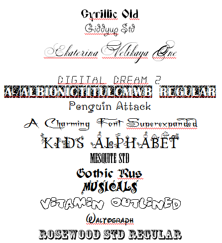 Декоративные шрифты чаще всего их используют, чтобы подчеркнуть новизну, яркость, индивидуальность. Но, лучше никогда не использовать их в качестве основного текста: они являются неудобочитаемыми, а так же при этом пропадает их эффектность.