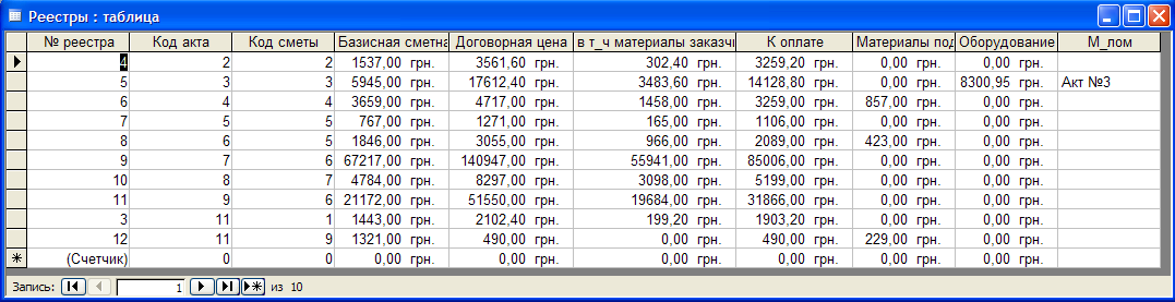 Рисунок 3.5 – Таблица «Реестры»