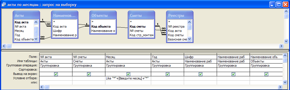 Рисунок 3.8 - Построение запроса «Акты по месяцам»