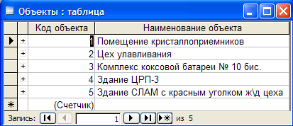 Рисунок 3.1 – Таблица «Объекты»