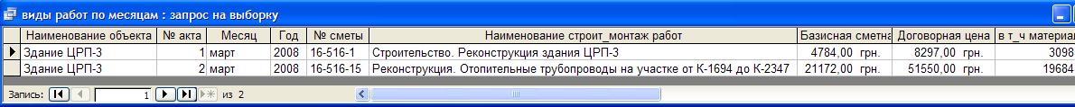 Рисунок 3.12 - Результат запроса «Виды работ по объектам»