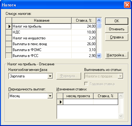 Рис.10 Окно «Налоги» из меню «Окружение»
