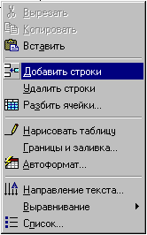 Рис.3.4. Контекстное меню работы с таблицей