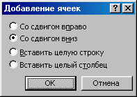 Вставка строки/столбца/ячейки.