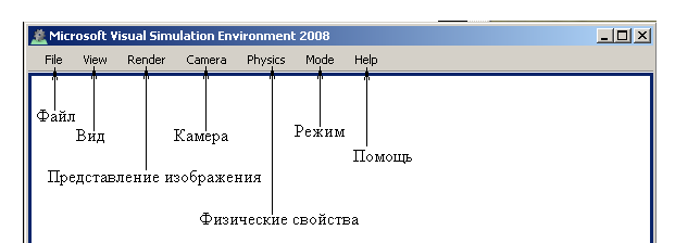 Опишем панель меню среды: