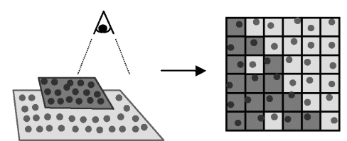 Типові методи воксельної візуалізації обробляють масив, і формують проекцію кожного його елемента на видову площину. Вихідний масив являє собою регулярну структуру даних, що істотно використовується в методах візуалізації. Звичайно елемент масиву з’являється на екрані у вигляді деякого примітиву, так званого відбитку (footprint) або сплату (splat). Різні методи відрізняються способами обчислень форми й розмірів зображення[3].
