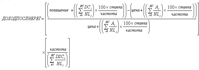ДОХОДПОСЛНЕРЕГ (дата_согл; дата_вступл_в_силу; последняя_выплата; ставка; цена; погашение; частота; базис)