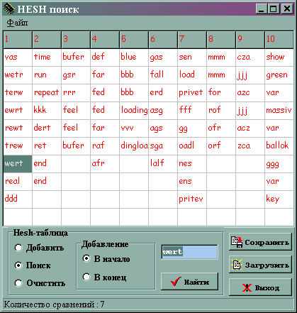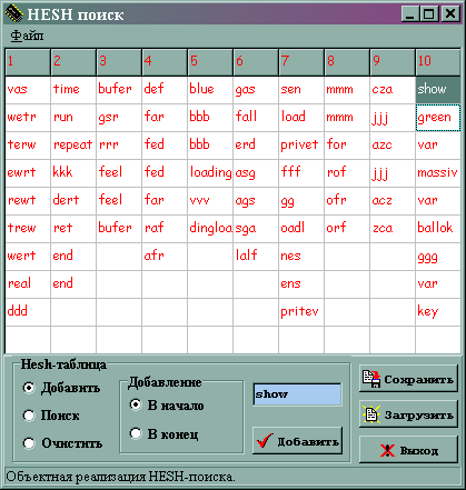 form1.StatusBar1.Panels.Add.Text:='Объектная реализация HESH-поиска.';