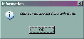 MessageDlg('Ключ с значением '+Edit1.Text+' добавлен.',MtInformation,[mbok],1);