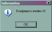 if j<>0 then MessageDlg('Конфликт в ячейке '+inttostr(j),MtInformation,[mbok],1);