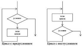 Рис. 9.1. Блок-схемы циклов с предусловием и постусловием