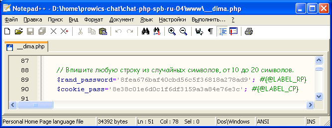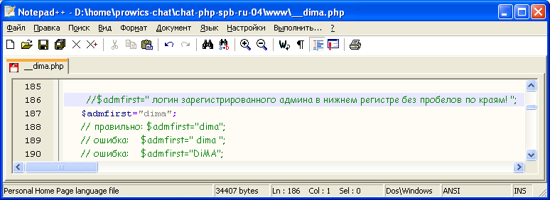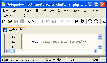 Чат работает сразу после установки. Не нужно ничего менять или переписывать заново. Для русификации чата нужно открыть файл incl/hdr.inc и измените последнюю строку include "lang/lang-en.inc"; строкой include "lang/lang-ru.inc";