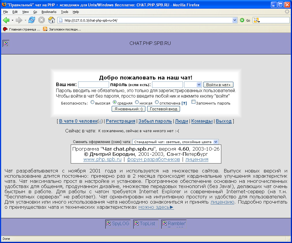 [19:50] CHAT.PHP.SPB.RU, ver 4.06, 06 September 2002