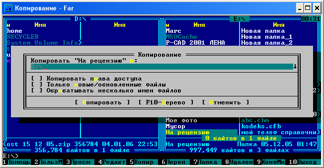 Наиболее часто используют режимы работы: «Архив» и «Выход». Режим работы «Архив» можно модифицировать.