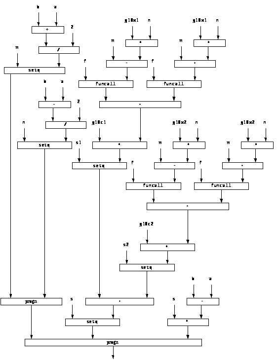 (setq ga (Gauss_Calc a (/ (+ a b) 2) f))