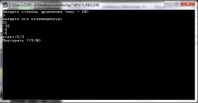 Данная процедура находит рациональные решения уравнения с целочисленными коэффициентами.