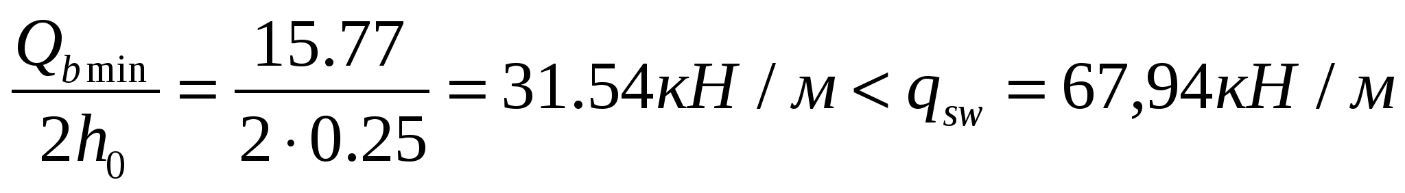 Выполним проверку прочности нижней ступени по перечной силе без поперечного армирования для единицы ширины этого сечения (b=1мм)
