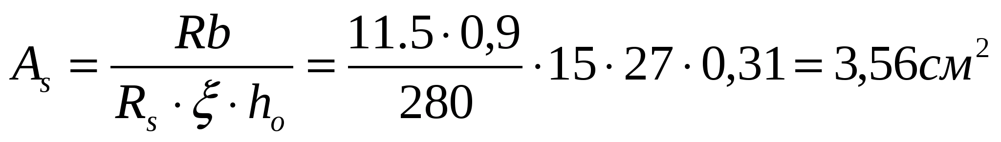 Принимаем бетон м.з. В35 (R>b>=17,5Мпа) и арматуру АII (R>s>>с>=280Мпа).