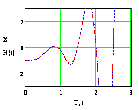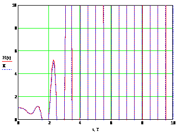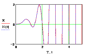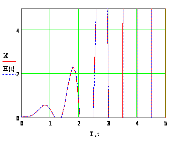 На рис. 9. показаны графики изменения переменной, полученных в результате решения заданного дифференциального уравнения путем интегрирования (кривая Х) и операторным методом (Н(t)).