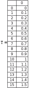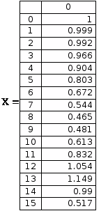 По этой таблице можно определять расчётные значения исходного вектора на заданном шаге.