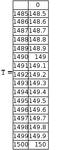 Результаты численного решения дифференциального уравнения можно вывести в виде таблицы с прокруткой времени и искомой неизвестной (см файл в Mathcad). Согласно выбранному М получили 1500 строк.