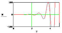 Рисунок11. Графики изменения искомой переменной, полученные в результате решения дифференциального уравнения двумя методами. При y(t) = cos(aּπּt) и нулевых начальных условиях;