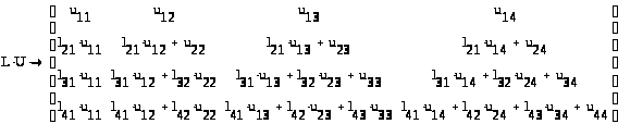 Метод Холесского заключается в представлении матрицы в виде произведения двух треугольных матриц L и U , имеющих следующий вид: диагональные элементы L матрицы равны единице, а элементы выше главной диагонали равны нулю; у матрицы U равны нулю элементы, лежащие ниже главной диагонали. Тогда можно записать: