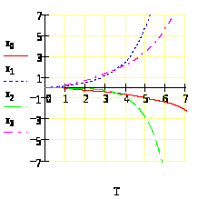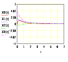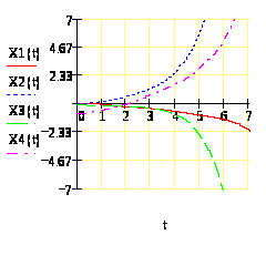 Рисунок 1.2. Графики изменения переменных состояния системы при заданных начальных условиях и отсутствии внешнего воздействия, полученные с помощью MATHCAD.