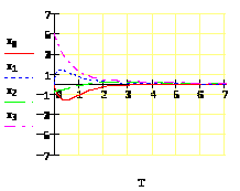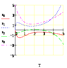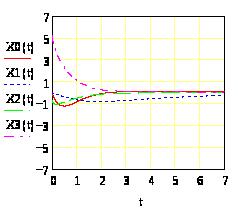 Рисунок 4.1. Графики изменения переменных состояния системы при заданных начальных условиях и воздействии, полученных с помощью функции MATHCAD.